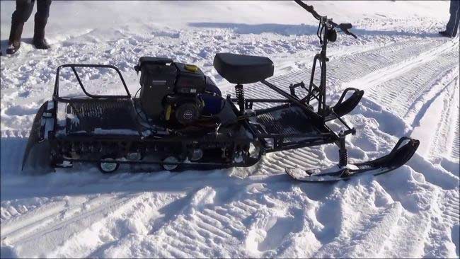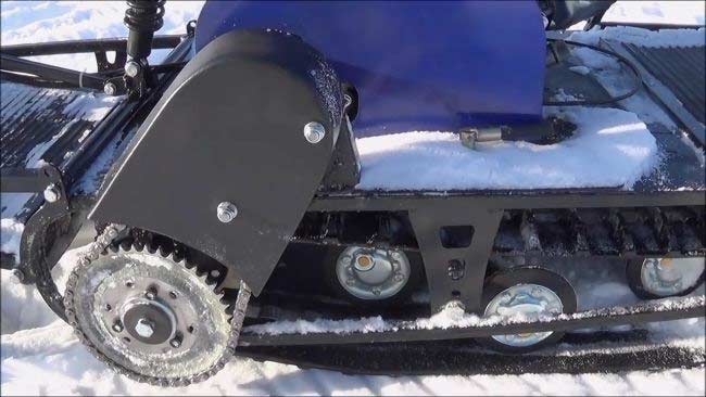 Из импортных комплектующих применяется двигатель - проверенные за много лет и наиболее распространенные в России двигатели LIFAN. Для двигателей LIFAN легко найти запчасти на рынке. Есть модификации с двигателем ZONGSHEN GB270, который не уступает по качеству LIFAN, но имеет максимальную в этом классе мощность - 9 лс. В основном же применяются российские комплектующие - детали трансмиссии - г. Рыбинск, гусеница - г. Курск, рама и прочие корпусные детали, коробка реверса, лыжи - Ижтехмаш, г. Ижевск. В трансмиссии используются более дорогие приводные цепи - производства Даугавпилс. В целом, в конструкции использованы широко доступные на рынке комплектующие, поэтому найти при необходимости нужную запчасть не составит особого труда.
