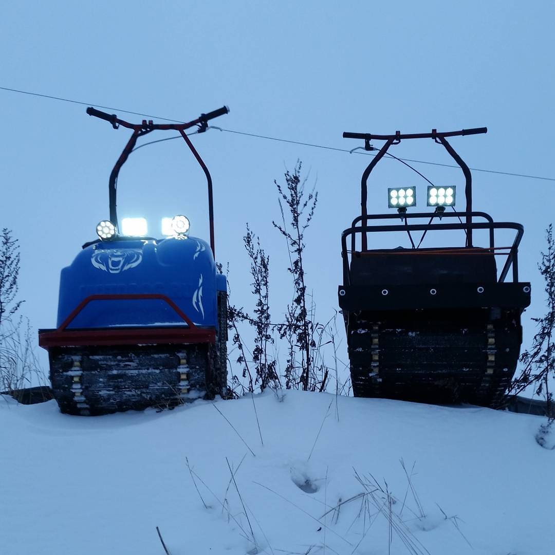 Мотособака весит 115 кг, а размер ее составляет 148 см в длину, 59 см в ширину и 78 см в высоту. Благодаря своей легкости и компактности, мотобуксировщик может маневрировать и проходить по рыхлой и мягкой почве. Кроме того, у мотобукса есть катковая подвеска, которая улучшает ход, обеспечивает устойчивость на неровной поверхности, а также смягчает удары и вибрации от дороги.