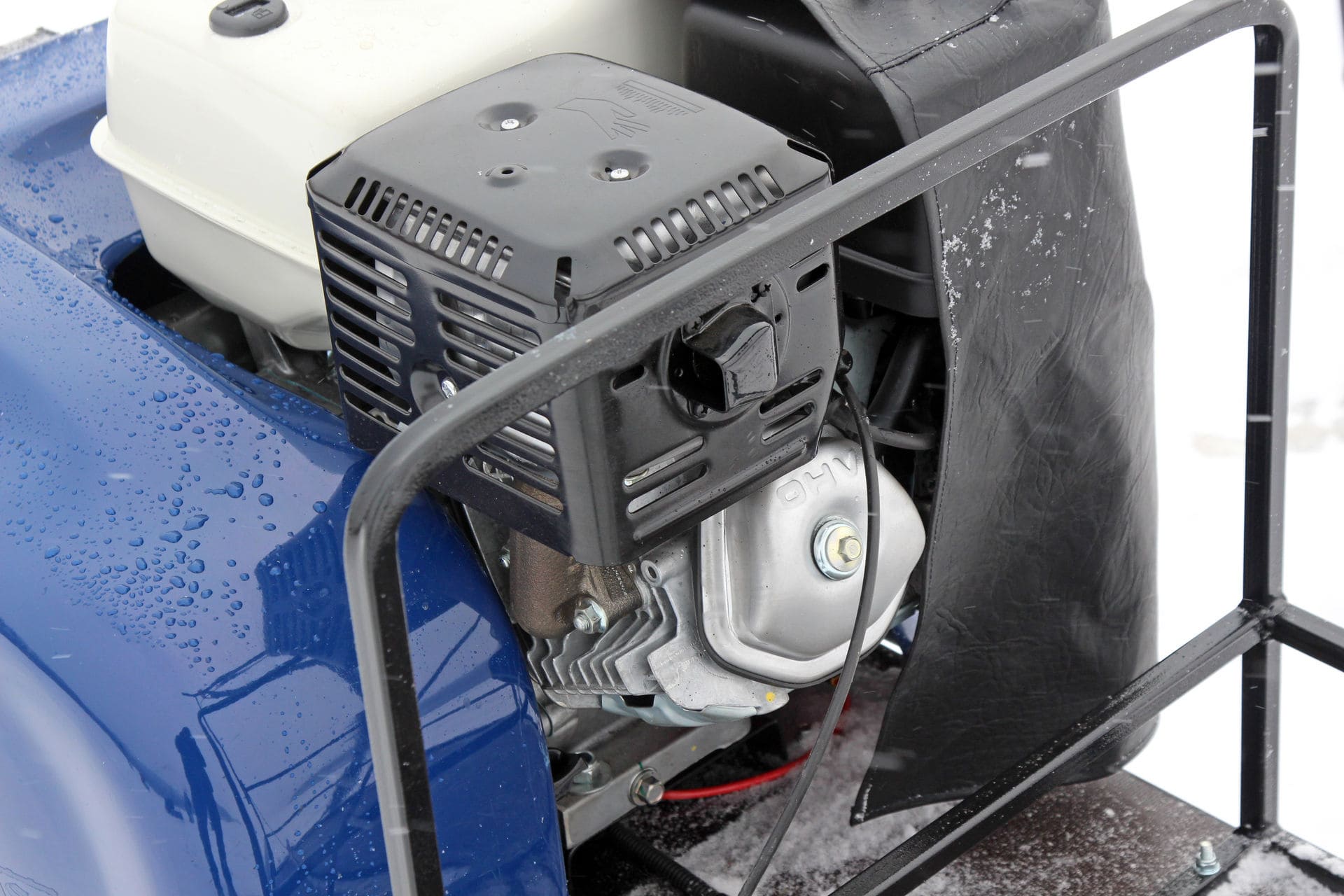 Этот мотобукс оснащен 4-х тактным двигателем мощностью 15 л. с., что позволяет достигать скорости до 45 км/ч. Это позволяет быстро перевозить груз весом до 40 кг, а также дополнительно до 200 кг в санях. Объем двигателя составляет 389 кубов, а топливный бак имеет объем 5,5 литров.