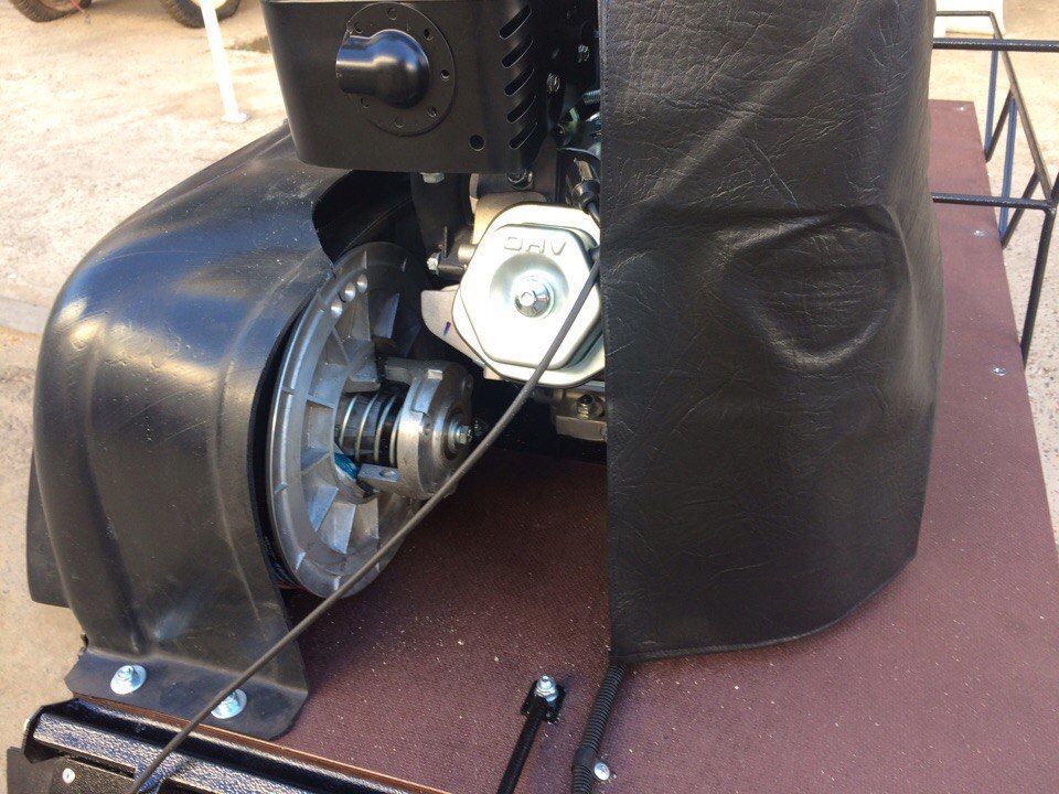 Этот мотобукс оснащен 4-х тактным двигателем мощностью 9 л. с., что позволяет достигать скорости до 40 км/ч. Это позволяет быстро перевозить груз весом до 240 кг. Объем двигателя составляет 390 кубов. Кроме того, мотовездеход оснащен топливным баком на 5,5 литров. Расходуя до 2 литров бензина в час, мотобуксировщик дает возможность беспрерывной до 3 часов работы.