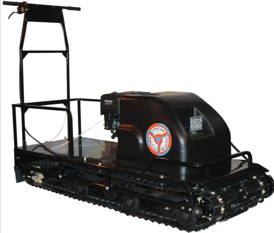 Буксировщик оснащен 4-х тактным двигателем мощностью 20.4 л.с. и объемом 460 кубов, достигающий скорость до 25 км/ч.Также есть возможность установить сани к мотобуксу, что позволит перевозить дополнительно до 450 кг.