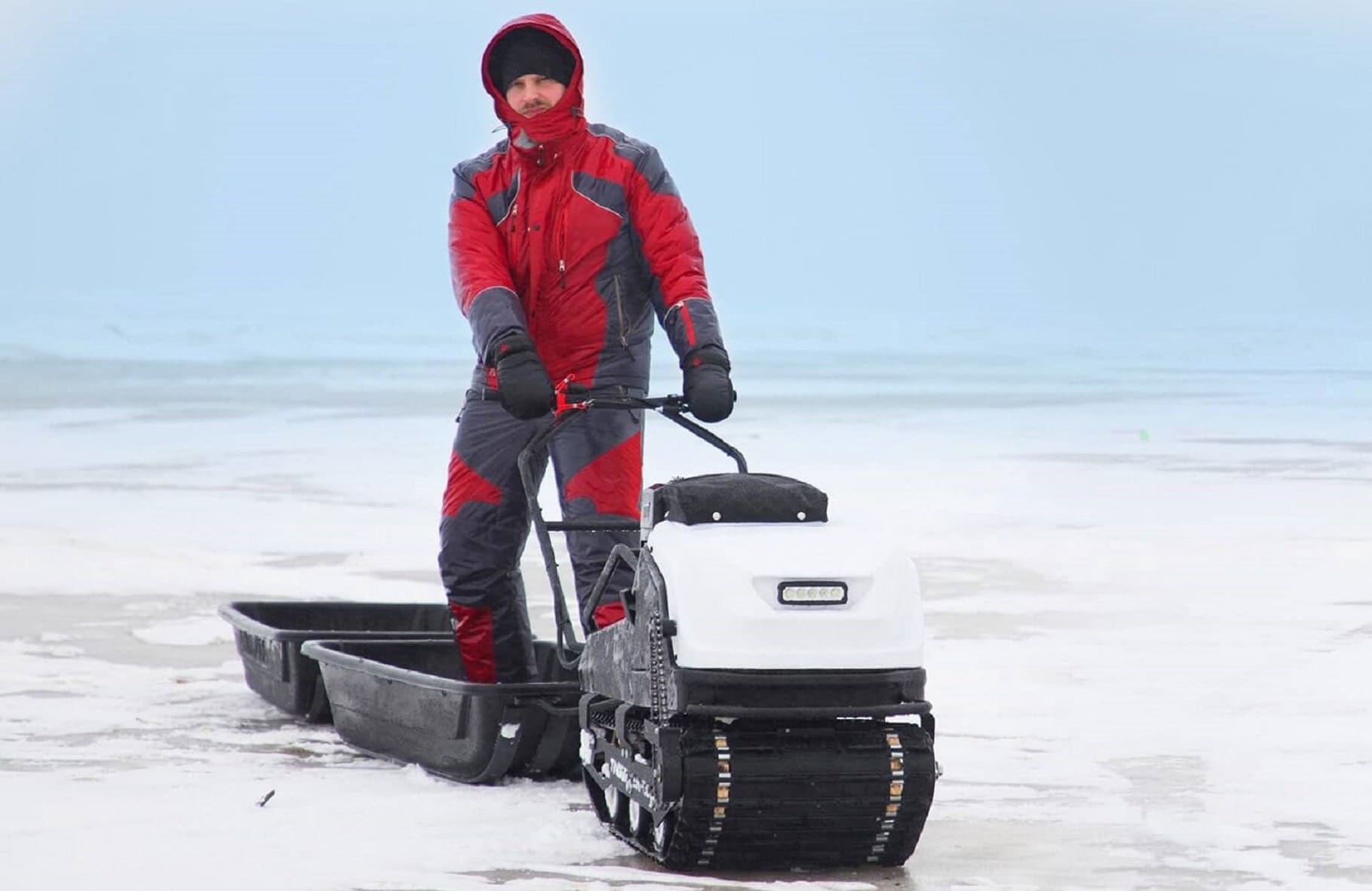 Мотособака весит 140 кг, а размер ее составляет 147 см в длину, 60 см в ширину и 83 см в высоту. Благодаря своей легкости, мотобуксировщик может маневрировать и проходить по рыхлой и мягкой почве.