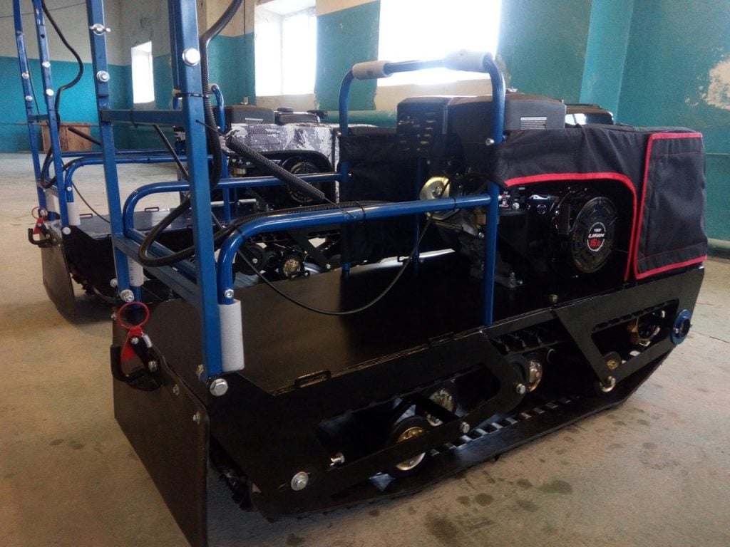 В конструкции мотовездехода используется цельная резиновая гусеница шириной 380 мм. Площадь опоры гусеницы улучшает тяговые характеристики, проходимость и устойчивость буксировщика.