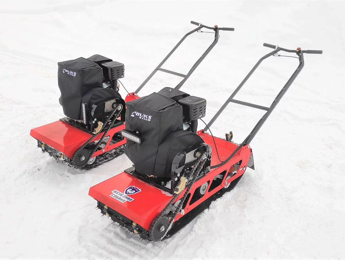 Мотособака весит 60 кг, а размер ее составляет 104 см в длину, 39 см в ширину и 65 см в высоту. Модель оснащена гусеницей шириной 380 мм. Гусеница в сочетании с катковой подвеской способна проходить спокойно по льду и даже по территории без снега.