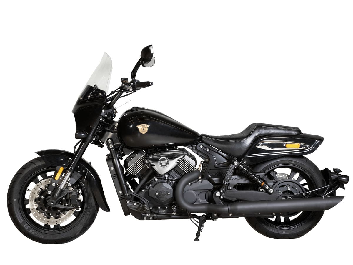 GROZA RL800 – круизёр, в котором крепко переплелись надёжность, функциональность и безупречный стиль. Комфортная посадка и наличие ветрового стекла обеспечивают комфортное перемещение не только в черте города, но и на бóльшие расстояния. Узкая фара с мощным светодиодным блоком – один из современных трендов в мире круизёров – придаёт мотоциклу больше серьёзности и брутальности. Широкий каплевидный бак вместе с тяговитым V-твином на 800 кубиков создают основной форм-фактор этой модели.