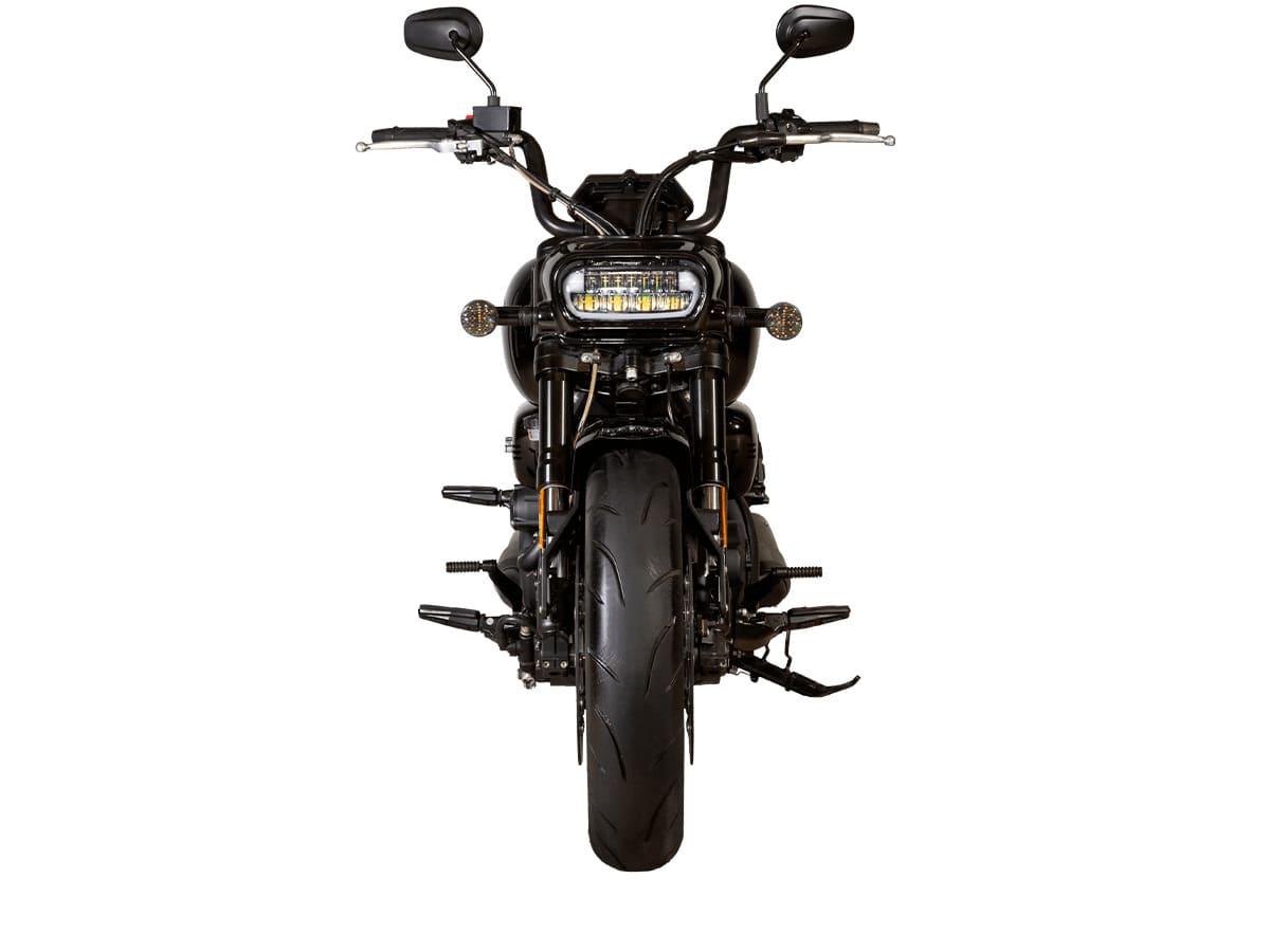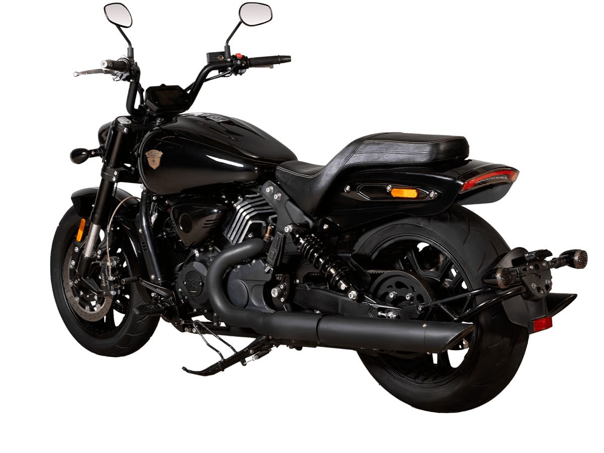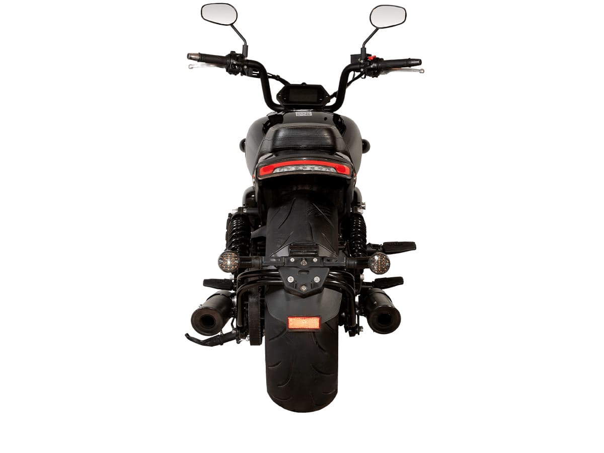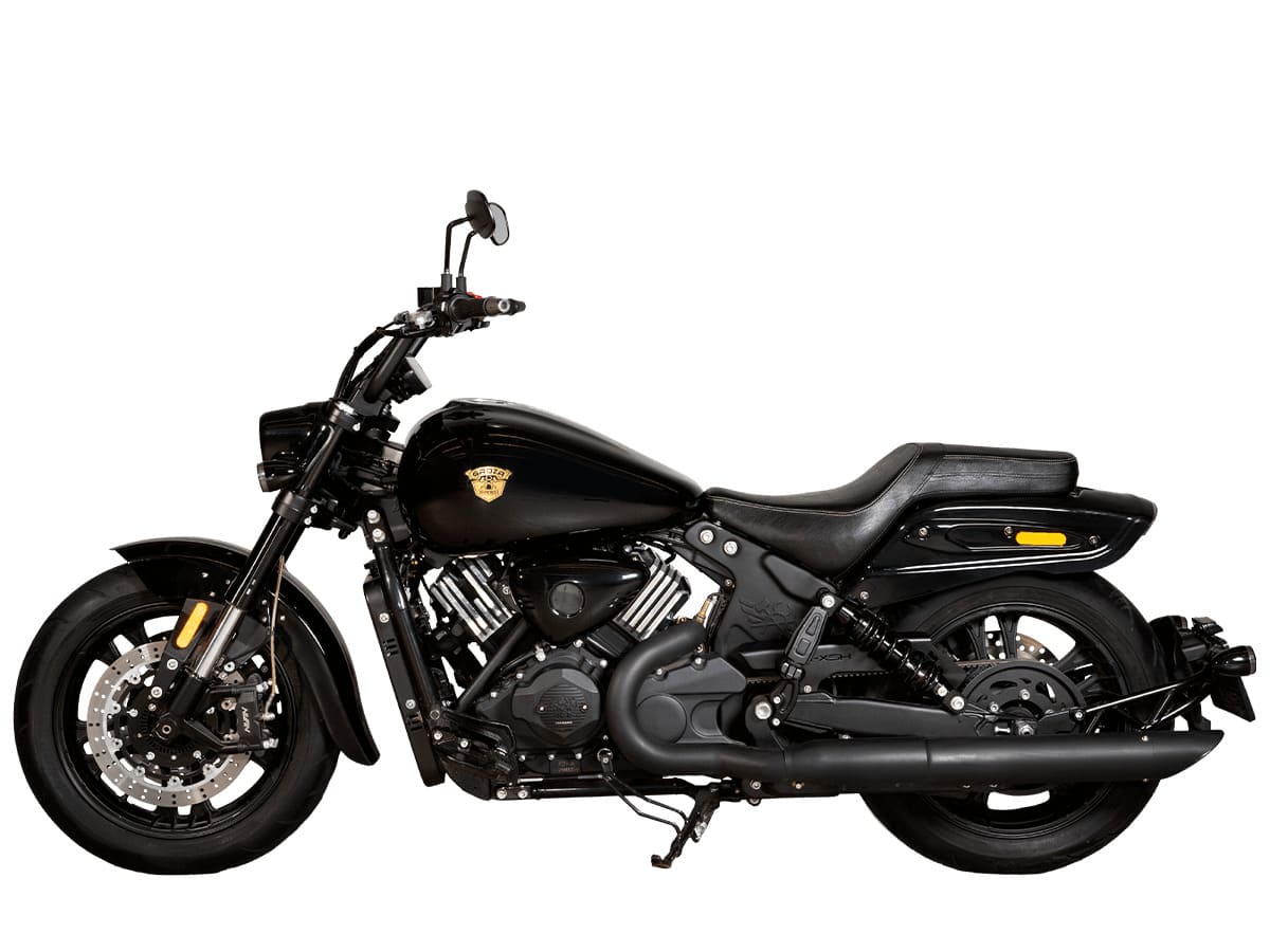 GROZA YL800 – круизёр, весь облик которого намекает на свободу, независимость и дорогу, уходящую в горизонт. Узкая фара с мощным светодиодным блоком – один из современных трендов в мире круизёров – придаёт мотоциклу больше серьёзности и брутальности. Отсутствие лобового обтекателя и ветрового стекла дают пилоту сполна насладиться набегающим потоком и полнее ощущать скорость – 800-кубовый V-твин способен разгонять мотоцикл до 180 км/ч. Силуэт этого круизёра как раз рождён этим двигателем в середине композиции, изящной каплей бака и двумя глушителями чёрного цвета, симметрично разведёнными в стороны.