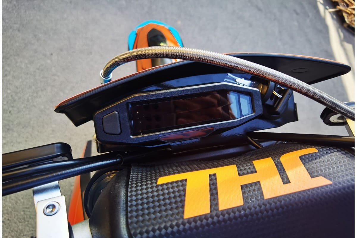 Головная фара с пятью светодиодными линзами светит очень ярко и позволяет продолжить покатушки, либо просто вернуться домой в темное время суток. Приборная панель ЖК отображает всю текущую информацию о состоянии мотоцикла. Вся электроника имеет влагозащищенные разъемы, которые абсолютно исключают попадание воды и образование коррозии! Питает электронику аккумулятор, Li-ion, общим весом 200 грамм!!!