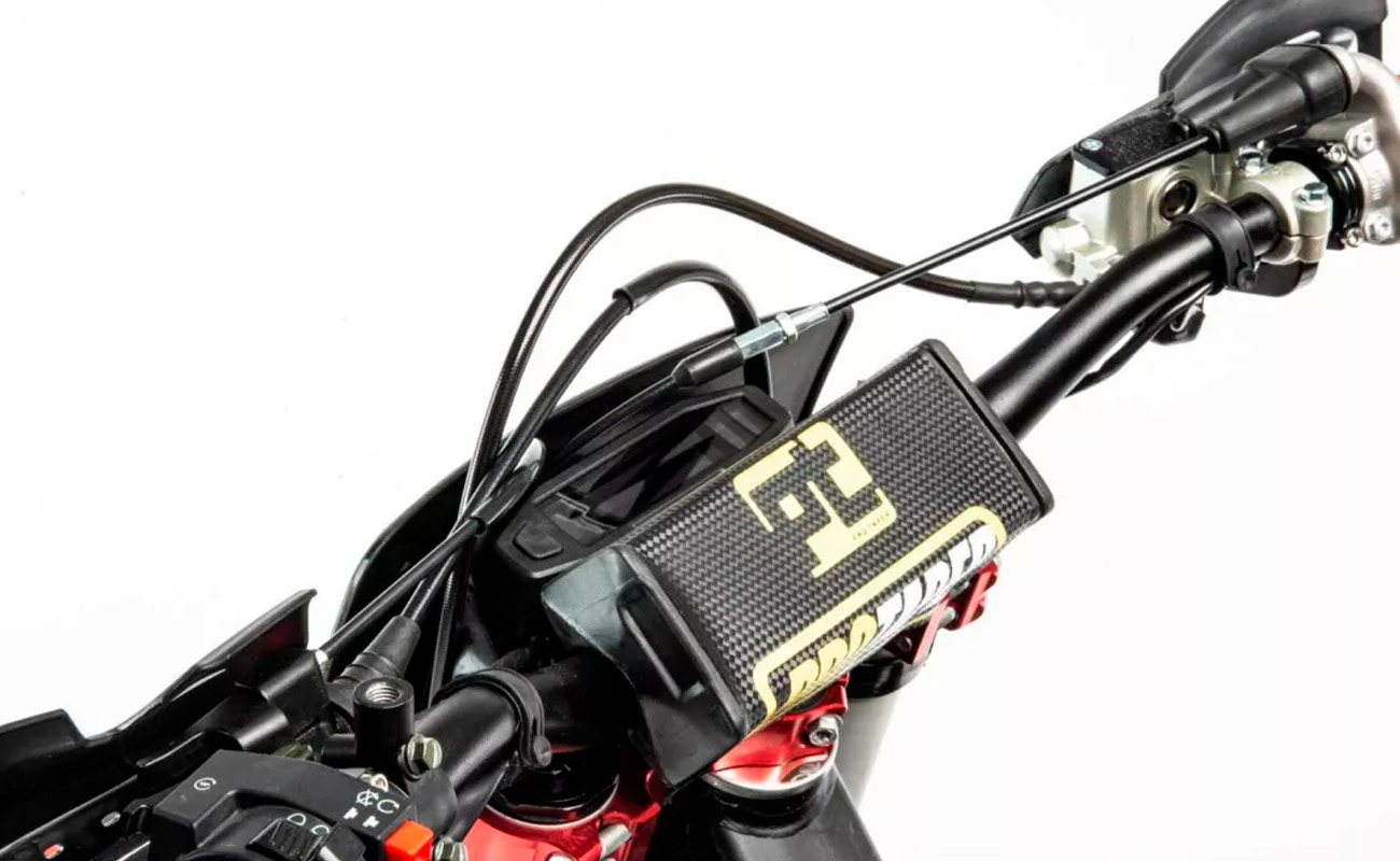 Высокий вынос руля которые позволяет комфортно ездить в стойке и полностью контролировать мотоцикл