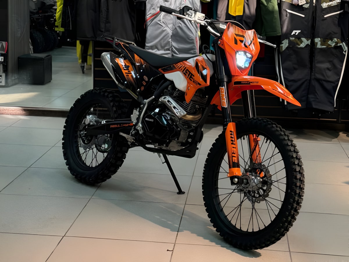- Двигатель: Регулируемый четырехтактный одноцилиндровый двигатель ZS 175FMM-3A с рабочим объемом 271,3 куб. см обеспечивает мощность в 22 л.с., что позволяет мотоциклу уверенно разгоняться и справляться с различными препятствиями на трассе.