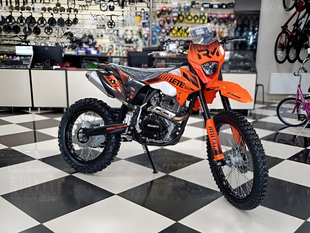 Kроссовый эндуро мотоцикл REGULMOTO ATHLETE PR 300 – это высокопроизводительная модель, которая подходит для любителей приключений и соревнований, обеспечивая отличную производительность и комфорт при управлении. Благодаря своим качествам, он станет надежным спутником на любых трассах и в любых условиях.