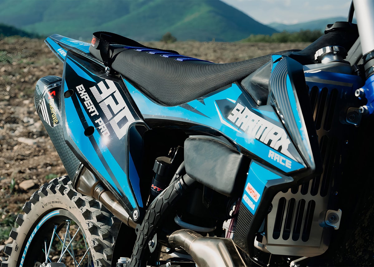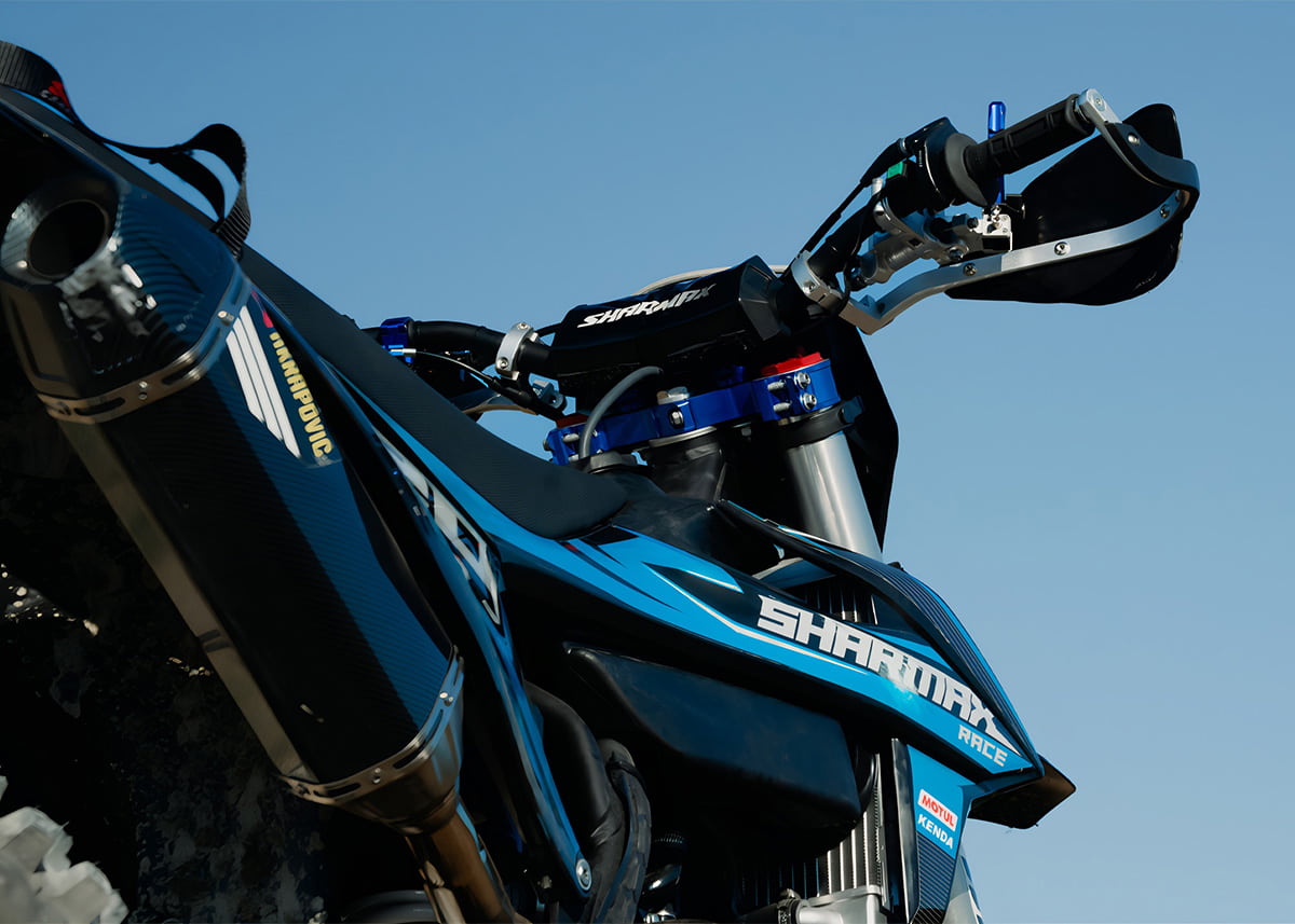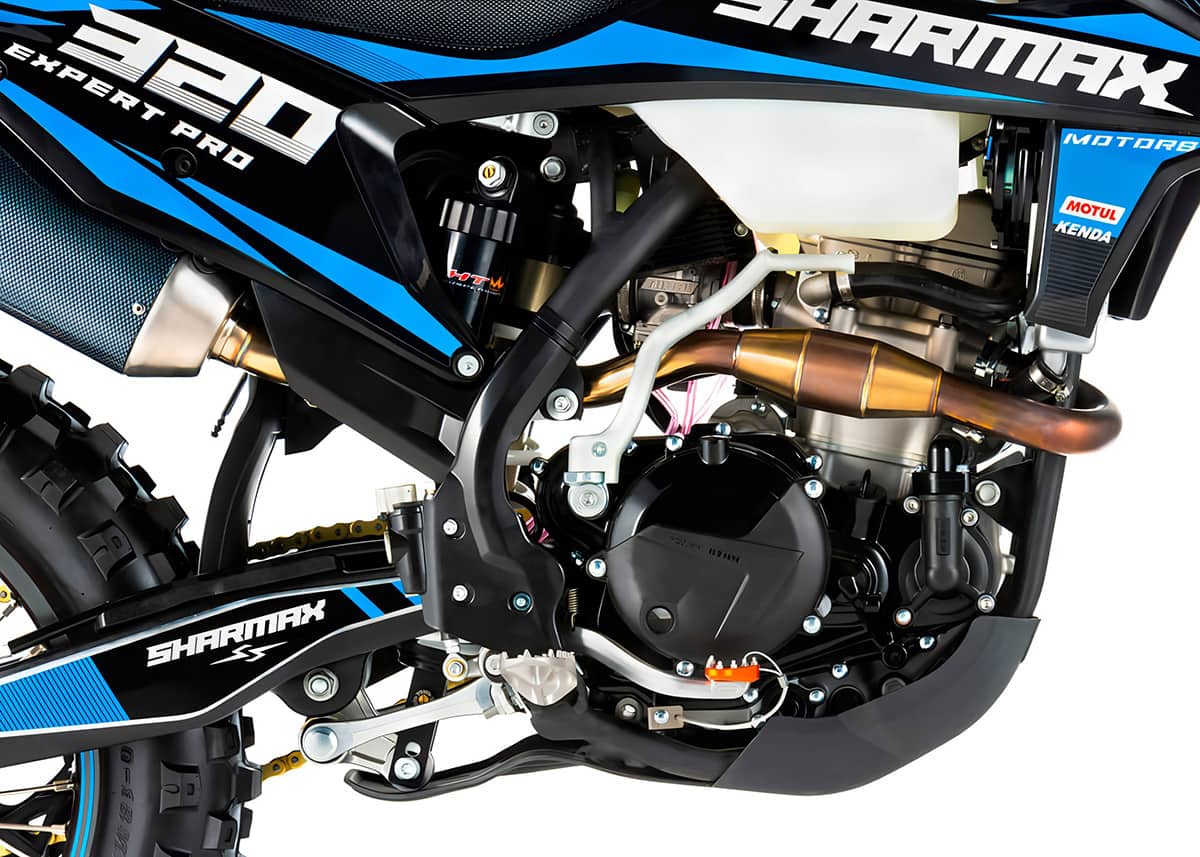 Подвеску Sharmax Expertpro 320 можно настроить под любую поверхность без потери качества. Передняя вилка перевёрнутого типа с клапаном сброса воздуха имеет регулировки демпфирования, сжатия и отбоя. Задняя подвеска также оснащена регулировкой преднатяга пружины. Надёжная подвеска поможет вам уверенно проходить повороты и сложные участки трассы, не теряя контроля над мотоциклом.