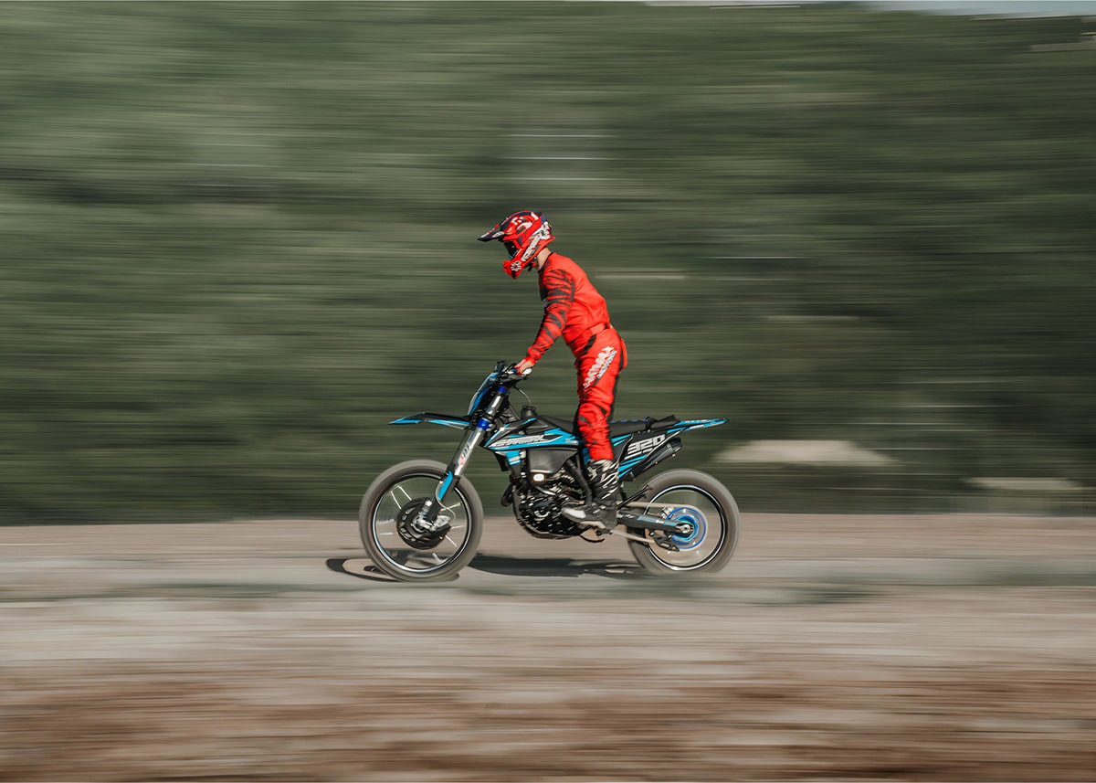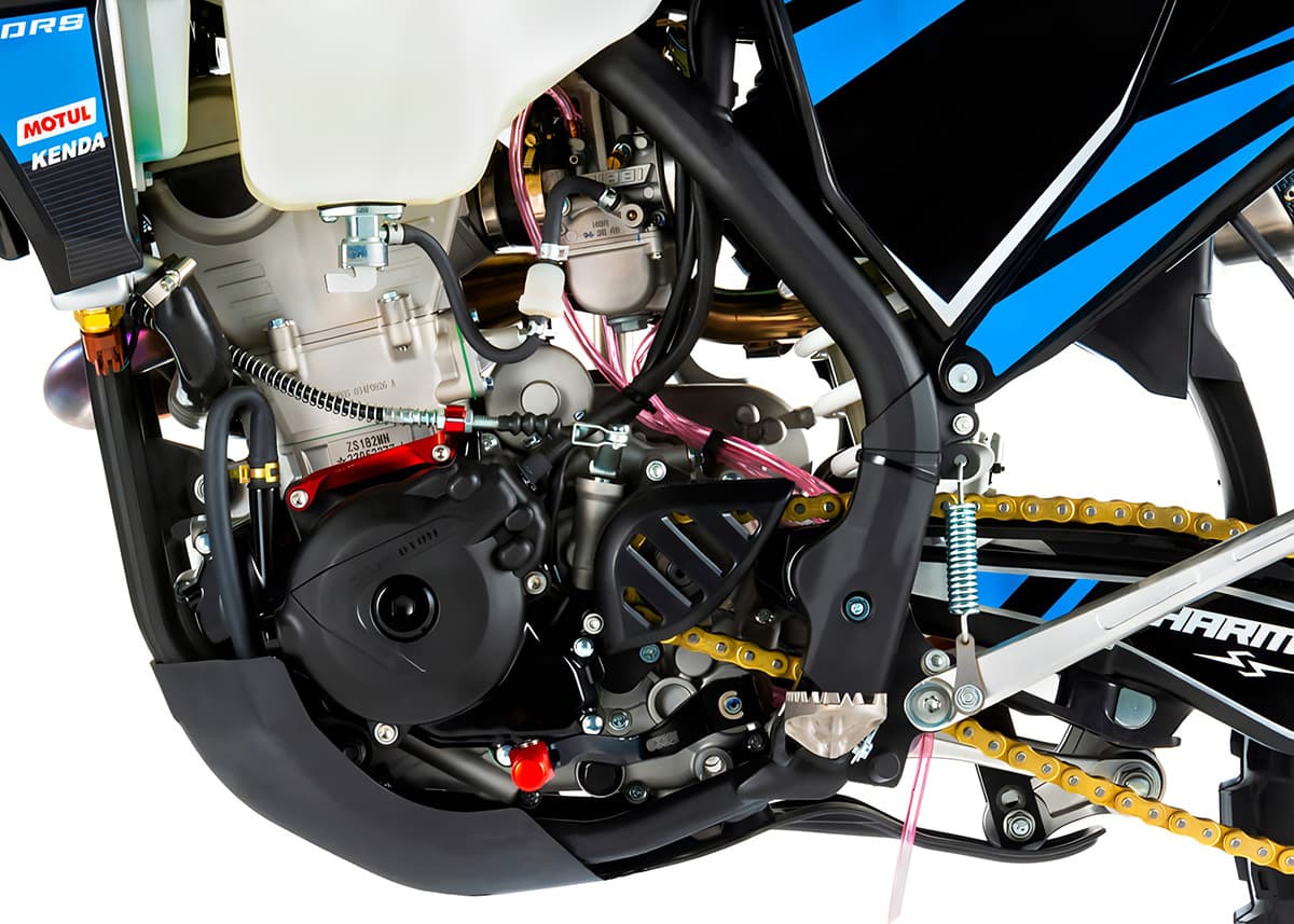 Мотор ZS 182 MN — настоящий гигант в мире эндуро. С объёмом 300 куб. см и мощностью 37 л. с. он разгонит байк до максимальной скорости с самого старта. А цепь 520 CHOHO GOLD выдержит даже самые высокие нагрузки, гарантируя надёжную работу двигателя.