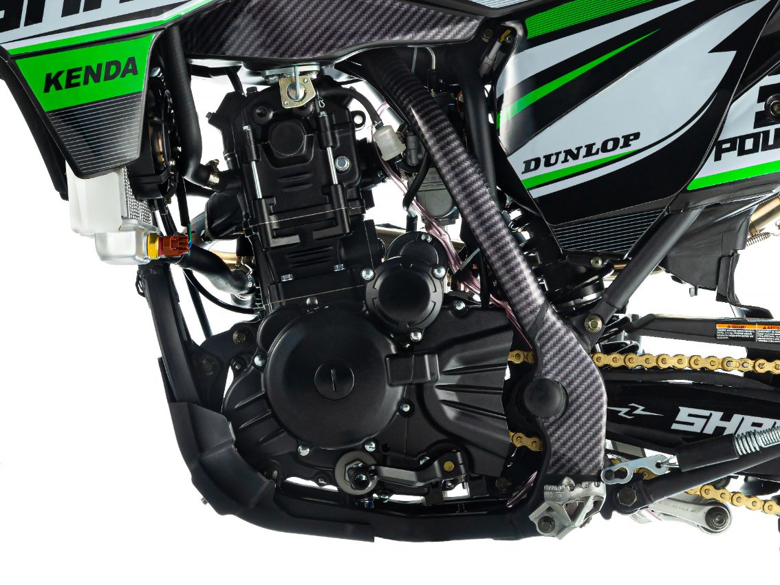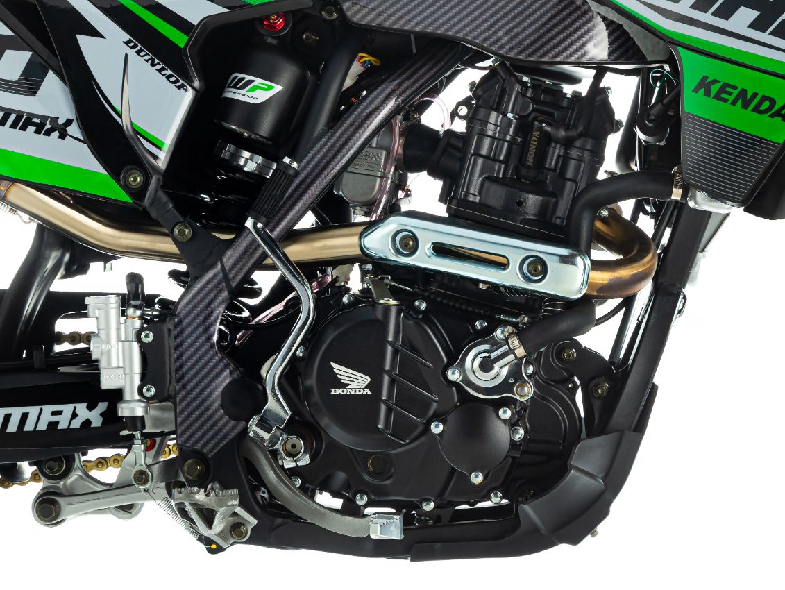 Идеально сбалансированный двигатель 174FMM от концерна Zongshen, с быстрым впрыском топлива будто был создан для этого байка. 280 куб. см и 27 л. с. выдают 8500 оборотов в минуту — постарайтесь не выпасть из седла. Этот силовой аппарат сделан, чтобы показать оптимальное сочетание полезной мощности и низкого веса.