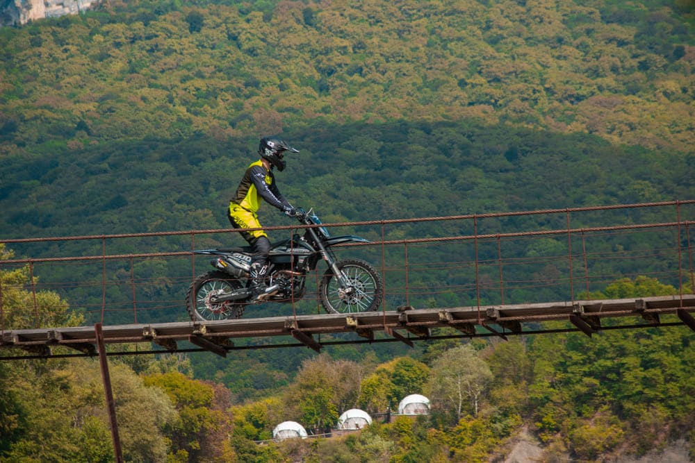 Подвеску можно настроить под грязь, камни и песок без потери качества. В конструкции задней подвески расположена прогрессия, позволяющая с комфортом передвигаться по мелкой щебёнке и преодолевать прыжки без ущерба для амортизатора. Байк легко настроить под свой вес, подобрав идеальный баланс жёсткости.