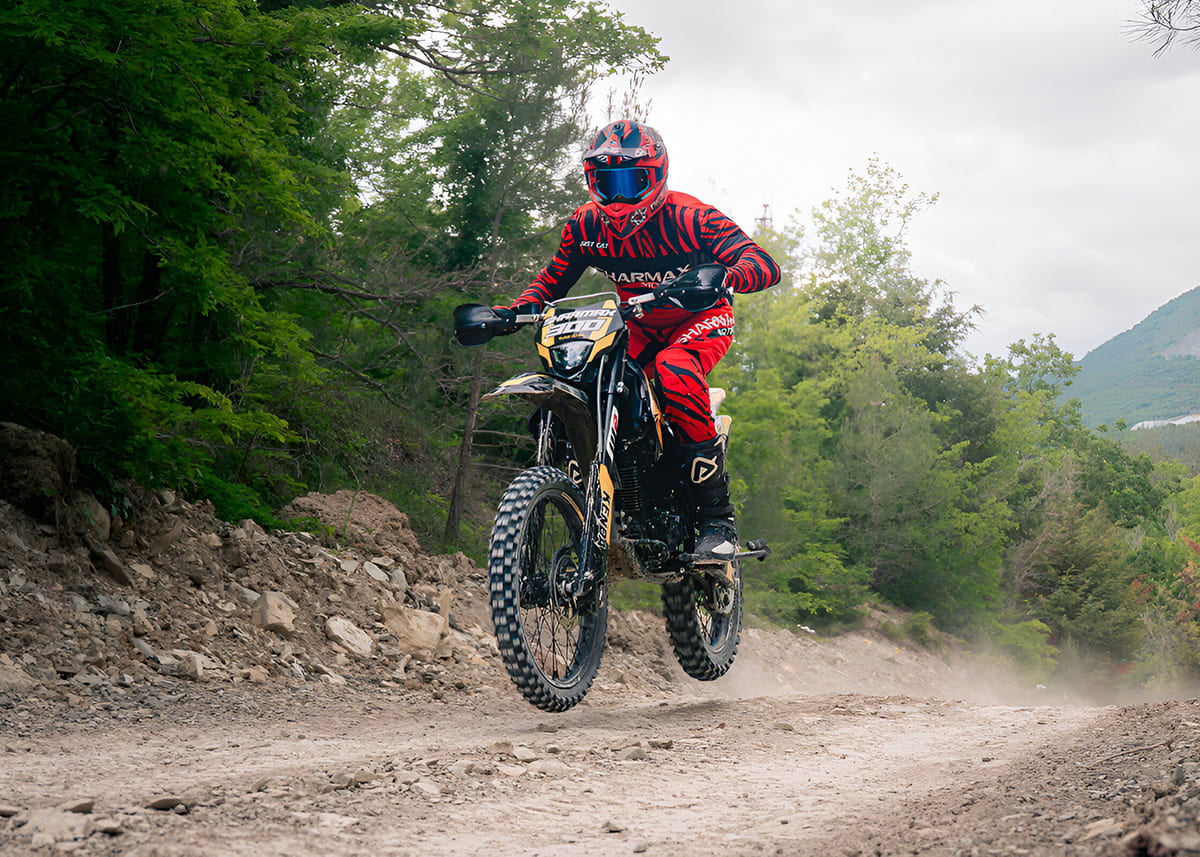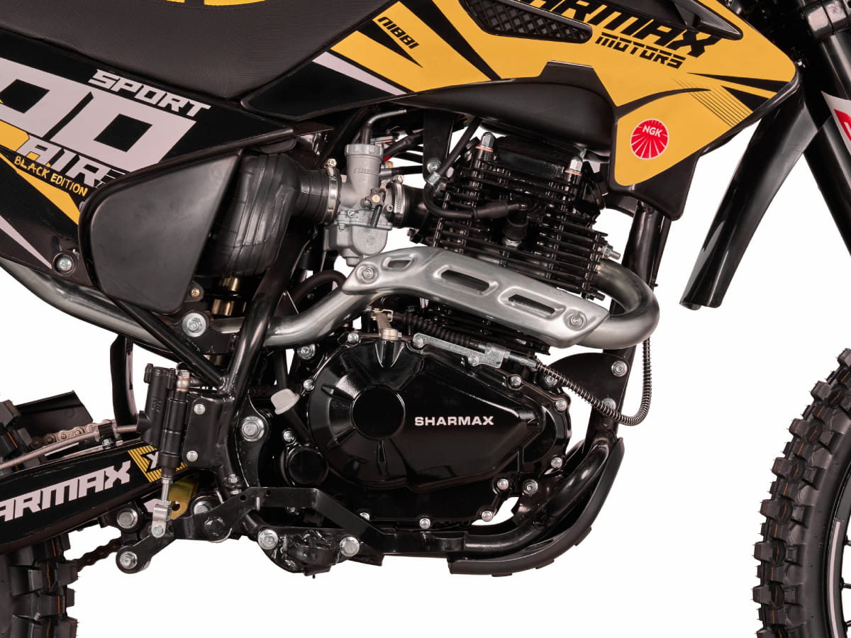 Sharmax Sport 300 Air Black Edition — лимитированная линейка эндуро байков Sharmax, созданная для ценителей сдержанного и стильного дизайна. Отзывчивый и быстрый, мотоцикл Sport 300 Air подарит ощущение превосходства на любой трассе. Премиальное качество и проверенные технологии легли в основу этой новинки 2024 года. Надёжная подвеска, новый двигатель с балансировочным валом усовершенствованная тормозная система — всё это поможет вам выйти на новый уровень в мире эндуро.