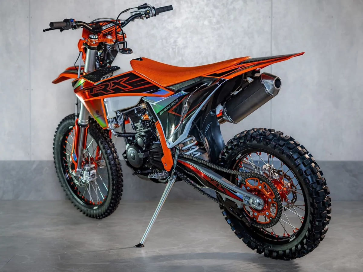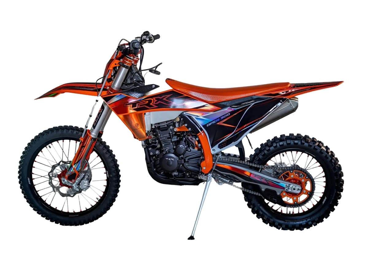 Кроссовый эндуро мотоцикл TRX OPEN 300 – это надежный и мощный инструмент для экстримального спорта и приключений. Его продуманные технологииВысококачественные компоненты и настраиваемые характеристики делают его идеальным выбором как для новичков, так и для профессиональных мотогонщиков.