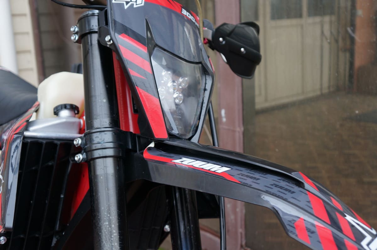 ZUUM ZM 300NC BUSTER, это эндуро мотоцикл, для покатушек и любительских соревнований. Собран только из высококачественных комплектующих, таких как двигатель Zongshen 177MM 298см3 мощностью 31 л.с, плоскодросельный карбюратор Nibbi Racing PWK34, мощная защита радиаторов, подвеска ККЕ с вилкой 48мм и рабочим ходом около 300мм, тормоза Brembo (копия), колесные обода ККЕ, усиленный руль из алюминия T6-7075, траверсы из фрезерованного алюминия, усиленные ступицы колес, мягкий и эластичным пластик, качественные наклейки, сегментная светодиодная фара и прочее. Если хочешь купить мотоцикл, и получать удовольствие от езды, а не от ремонта, то мотоциклы ZUUM, это то, что ты ищешь!
