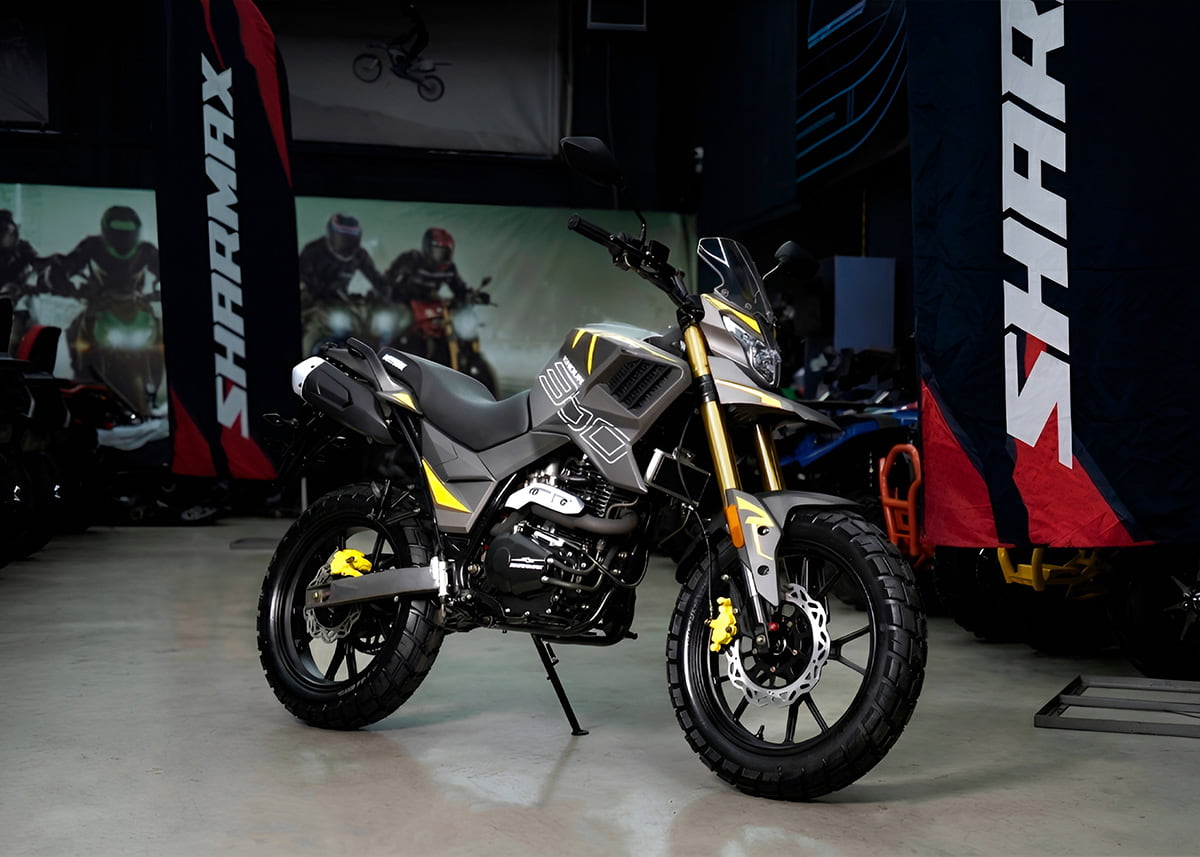 Sharmax Enduro 300 это стильный и доступный мотоцикл класса турэндуро. Его назначение — дерзкий штурм внедорожных направлений вперемешку с неспешными катаниями по городу или пригородным шоссе. В обеих стихиях универсальный байк чувствует себя уверенно. Прямая посадка, удобное седло и широкий хват руля позволяют райдеру комфортно маневрировать в трафике, а на пересеченке вступают в работу длинноходные подвески и тяговитость одноцилиндрового двигателя. Мотоцикл пригоден и для дальних путешествий — он готов к движению по любым покрытиям, прост в обслуживании и незапланированных ремонтах.