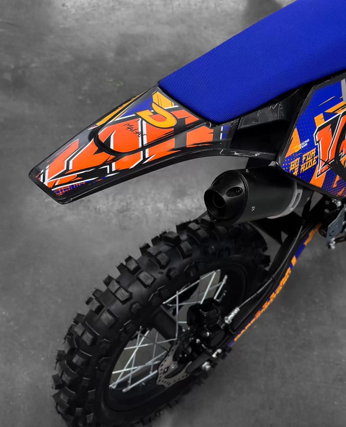 Более мощная версия модели Malai — с двигателем 140 см³ и улучшенным охлаждением. Подойдёт как подросткам, так и взрослым райдерам. Надёжный, красивый, с отличной тягой и повышенной проходимостью. Питбайк Darex Malai 140 — это стиль, технологии и максимальная отдача. Новый синий дизайн с динамичной графикой и фирменным акцентом Darex Moto — создан, чтобы быть на шаг впереди и в стиле, и в мощности.
