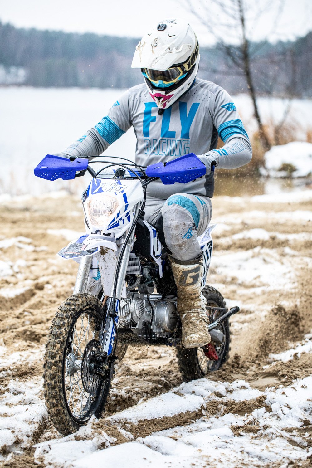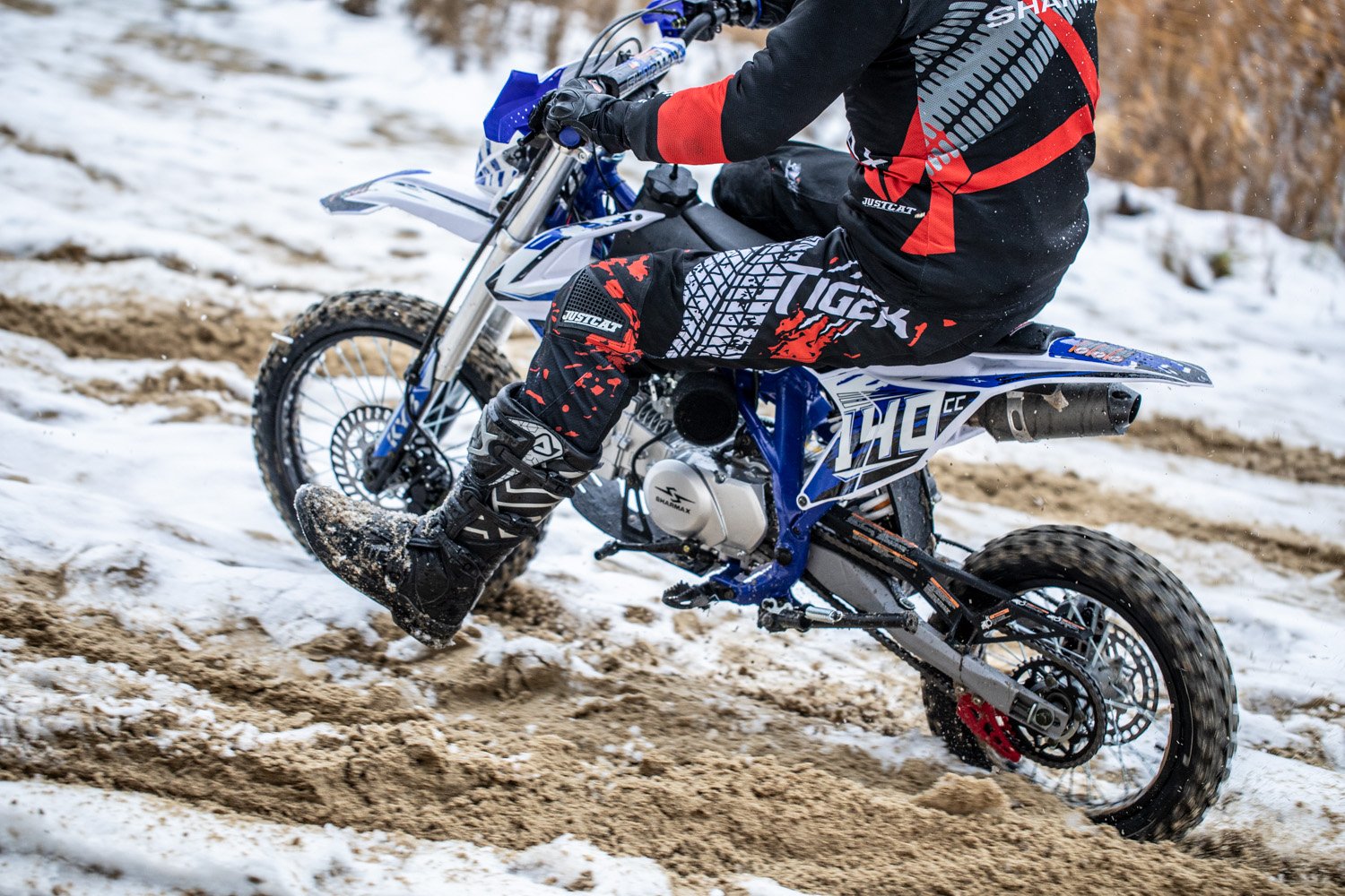 Сочетание цветовой гаммы, в которой выполнен питбайк, подчеркивает его дерзость и энергичность. Тот момент, когда мотоцикл полностью отражает индивидуальность своего владельца.