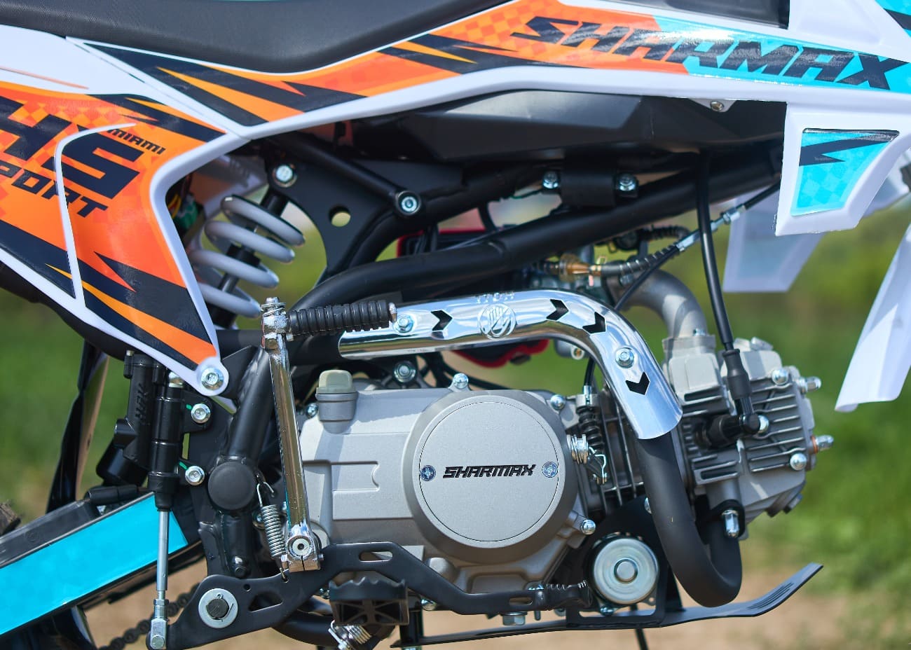 Sharmax Sport 145 Miami — это воплощение спортивного духа и стремление к победе. Его дизайн с чёткими линиями и яркой цветовой гаммой делает питбайк уникальным и запоминающимся.