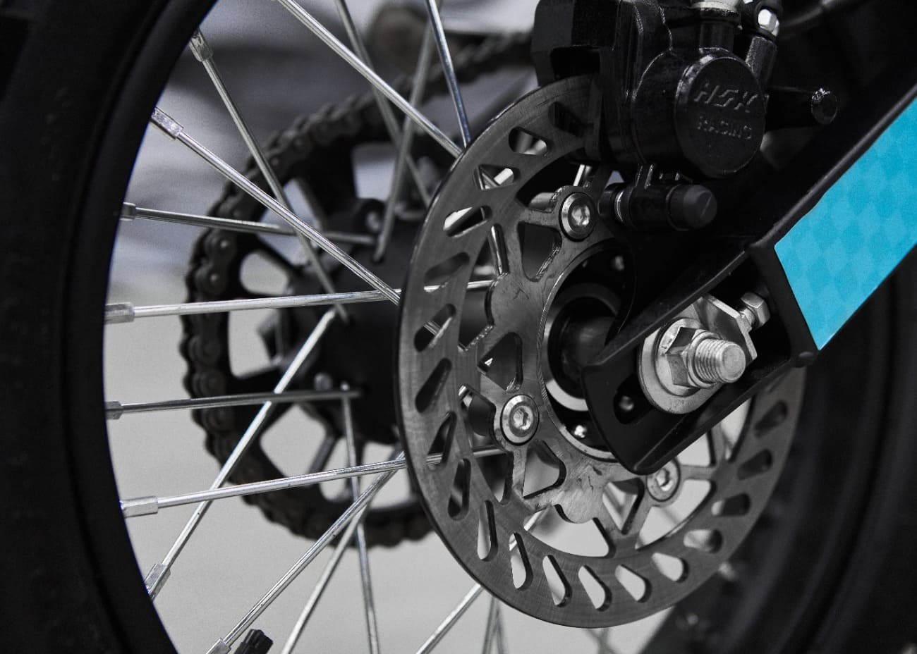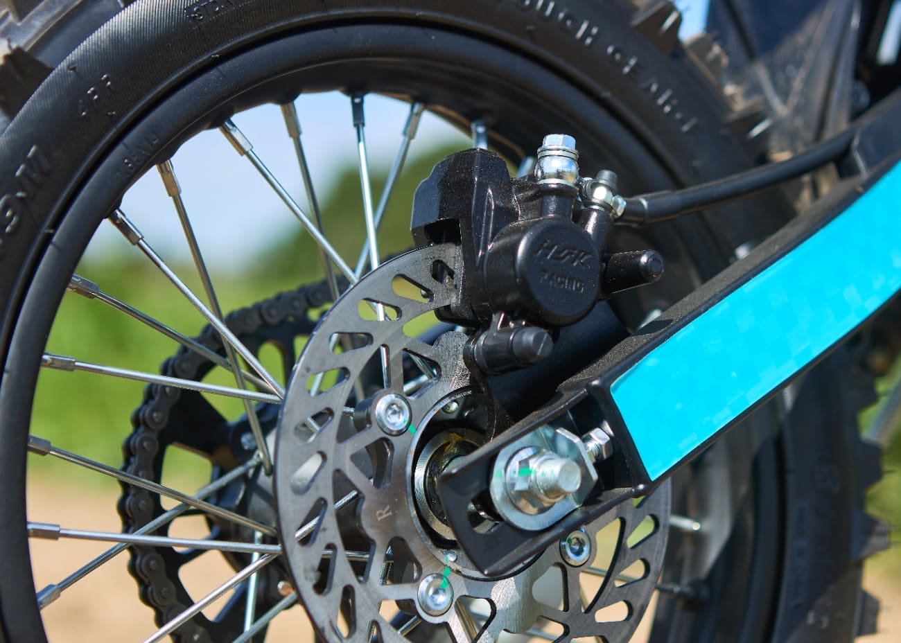 Удлинённая колёсная база (1210 мм) делает питбайк невероятно устойчивым. Это позволяет гонщику чувствовать себя комфортно даже на раскисших от дождя дорогах. Диаметр колёс — 17/14 дюймов — обеспечивает отличное сцепление с поверхностью и позволяет преодолевать любые препятствия.