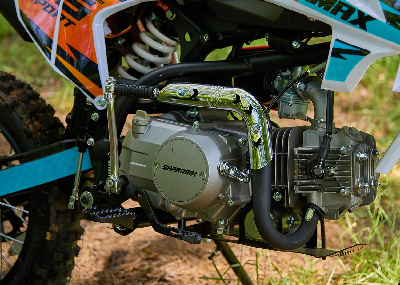 Двигатель 154FMI объёмом 125 кубов и мощностью 10 л. с. — идеальное решение для питбайка. Он компактный, но при этом невероятно надёжный. В сочетании с механической 4-ступенчатой коробкой передач он обеспечивает бесперебойную работу даже в самых экстремальных условиях.