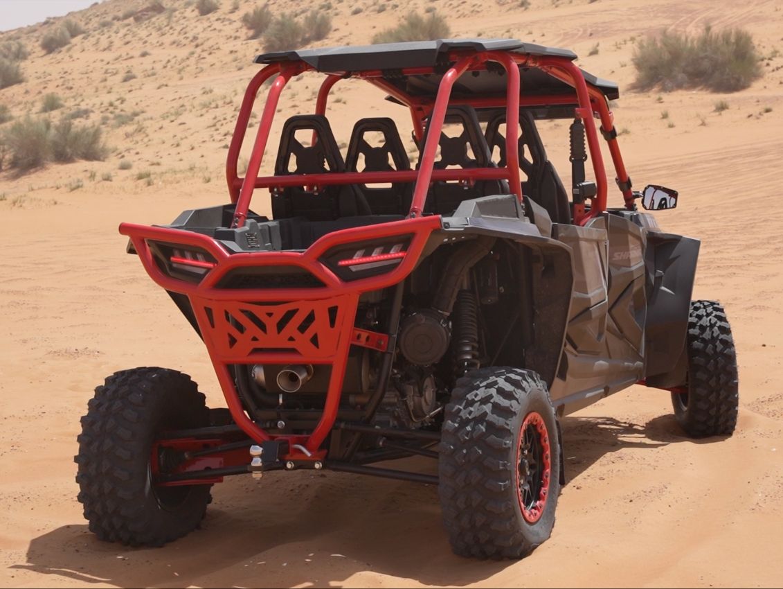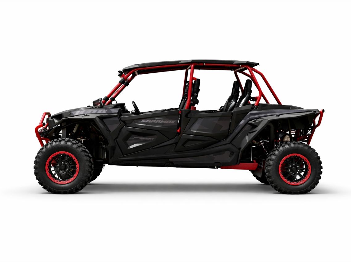 SHARMAX XFORCE 1100 SPORT EFI X4 — багги, который не просит выбирать между комфортом для пассажиров и способностью проехать там, где дороги заканчиваются. 98 лошадей, почти полметра хода подвески, полный привод и запас хода больше 300 километров. Для тех, кто не привык останавливаться перед препятствиями и не хочет путешествовать в одиночку.