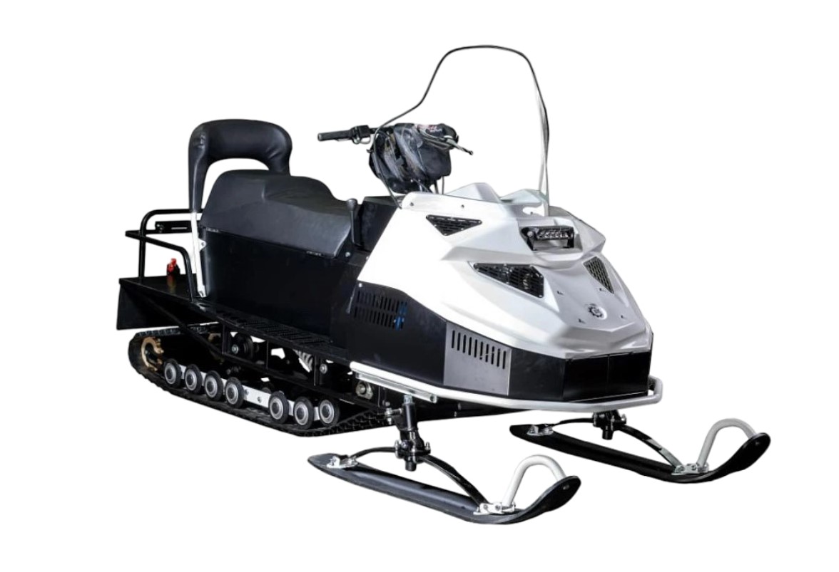 Снегоход БТС 4Т РК СУПЕР-ЛОНГ ЛЮКС 29 л.с. - это утилитарный снегоход с передним приводом и мощным двигателем 29 л.с., отличающийся комфортом (сиденье Люкс с спинкой), хорошей проходимостью благодаря длинной гусенице (3333 мм) и рельсо-катковой подвеске, а также надежной вариаторной трансмиссией с реверсом (вперед/нейтраль/назад) и электростартером, идеально подходящий для работы и отдыха на снегу.