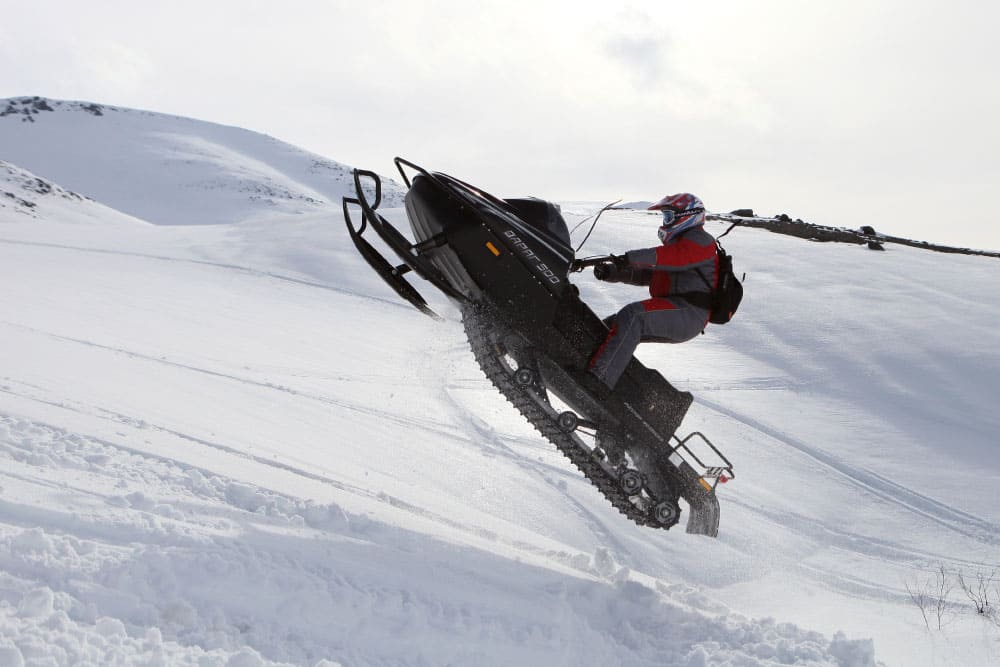 Снегокат имеет вариатор - системой передач, которая позволяет без рывков разгоняться и двигаться на постоянной скорости. Также вариатор уменьшает эксплуатационный срок деталей и повышает комфорт во время езды.