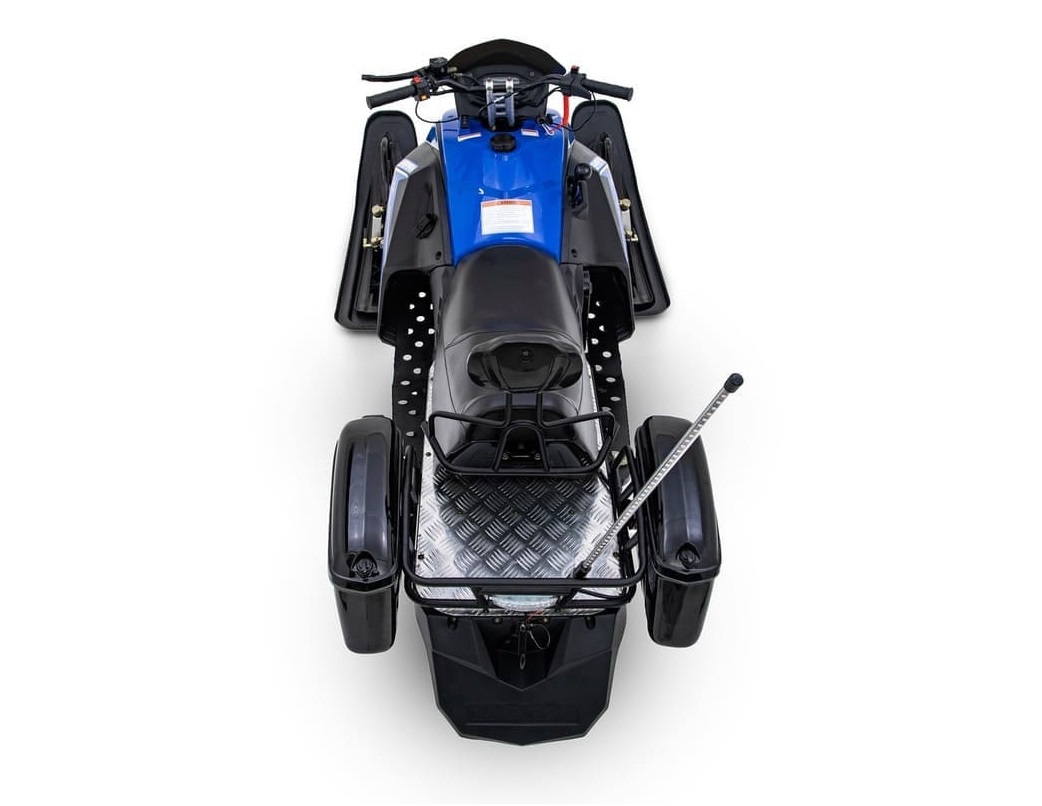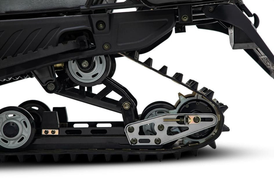 Длинная и в меру широкая резинотканевая гусеница с повышенным грунтозацепом создает большое пятно соприкосновения с поверхностью и в разы увеличивает проходимость снегохода. Совокупность этих факторов позволяет без риска перевозить двоих пассажиров и груз до 170 кг. под наклоном до 35 градусов. Сзади есть мощный фаркоп с возможность транспортировать до 300 килограммов груза.