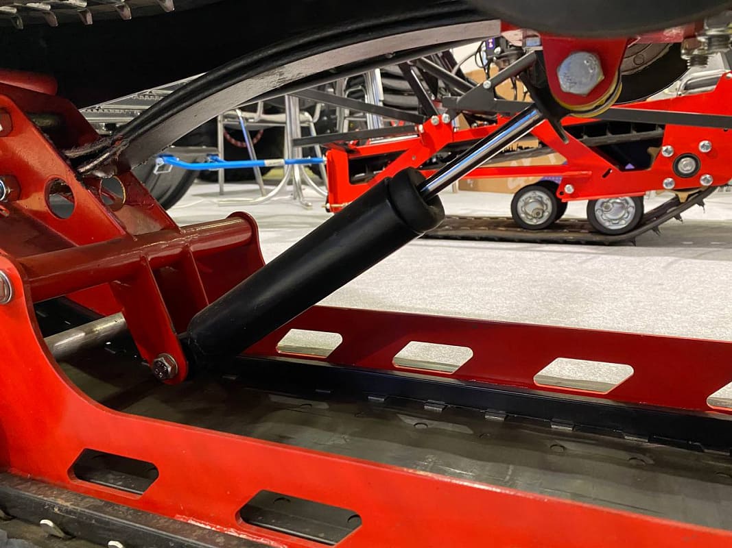 Гусеницы снегохода обладают хорошим сцеплением со снегом и обеспечивают безопасность райдеру. Особенно это важно, когда речь идет о подъемах по заснеженным тропам. На снегоходе установлены подвески: