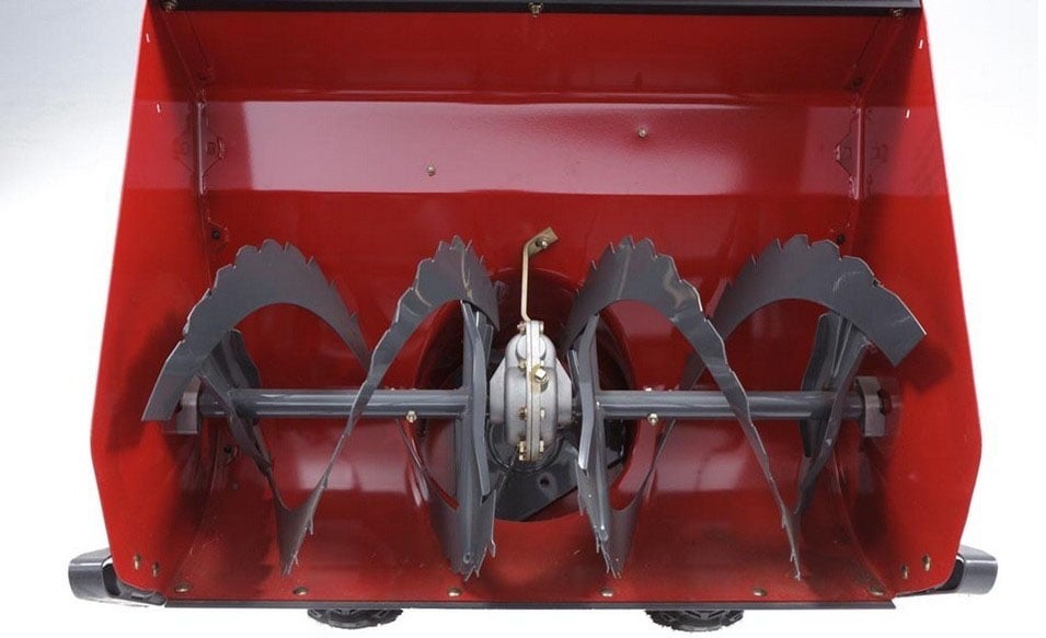 Шнек. Снегоуборочная машина оснащена специальным стальным агрессивным шнеком, который позволяет справиться даже с давно залежавшимся снегом.