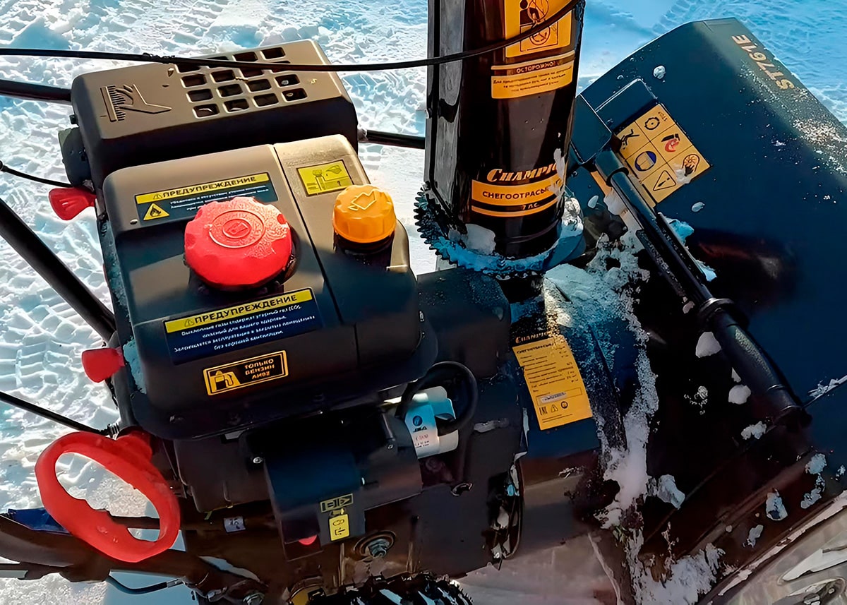 Ручной стартер. Используется для запуска двигателя и находится в удобном и доступном месте на задней части снегоуборщика в виде рычага.