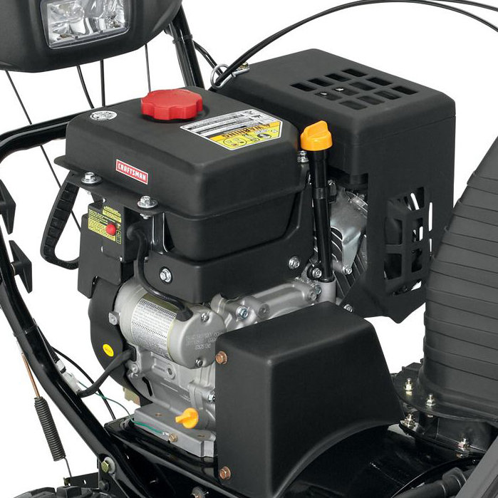 Бензиновый 4-тактный двигатель MTD объемом 357 куб.см и мощностью 13 л.с. с воздушным оxлаждением. Запуск двигателя осуществляется с ручного стартера и электростартера. Клапаны двигателя имеют верхнее расположение OHV, что позволяет топливу сгорать почти без остатка и вырабатывать большую мощность, без образования нагара. Работает при любых минусовых температурах. В отличии от летних двигателей спроектирован специально для работы в зимних условиях: нет воздушного фильтра, увеличенная рукоятка пускового троса (для возможности заводить двигатель в перчатках), дополнительные защитные кожухи (двигатель быстрее прогревается и выходит на рабочий режим, стабильнее работает в морозы). Для холодной погоды двигатель CRAFTSMAN оборудован системой подкачки топлива, которая гарантирует быстрый запуск при любых погодных условиях
