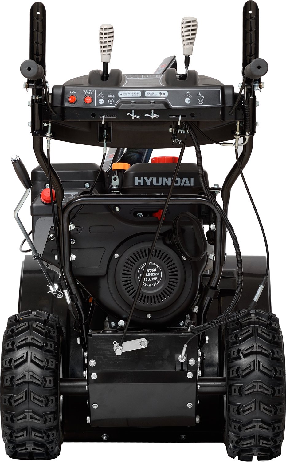 Снегоуборочная машина Хендай оснащена бензиновым двигателем с воздушным охлаждением мощностью 11 л.с. и объемом 358 куб. см. Двигатели ICW400 в моделях Hyundai обеспечивают запуск при температуре до -30 °С, имеют ресурс более 20 моточасов, отличаются низким уровнем шума и расходом топлива АИ-92.