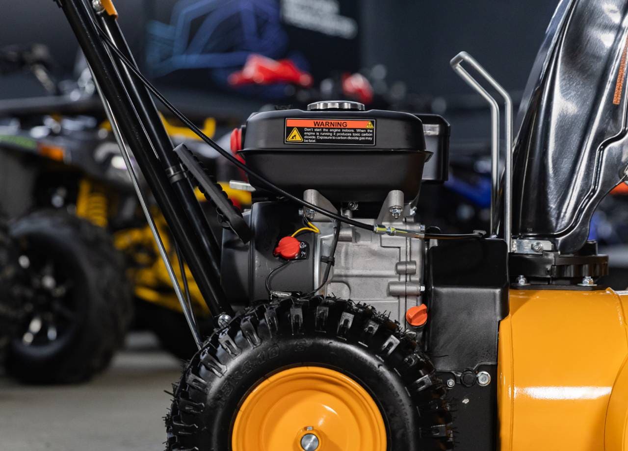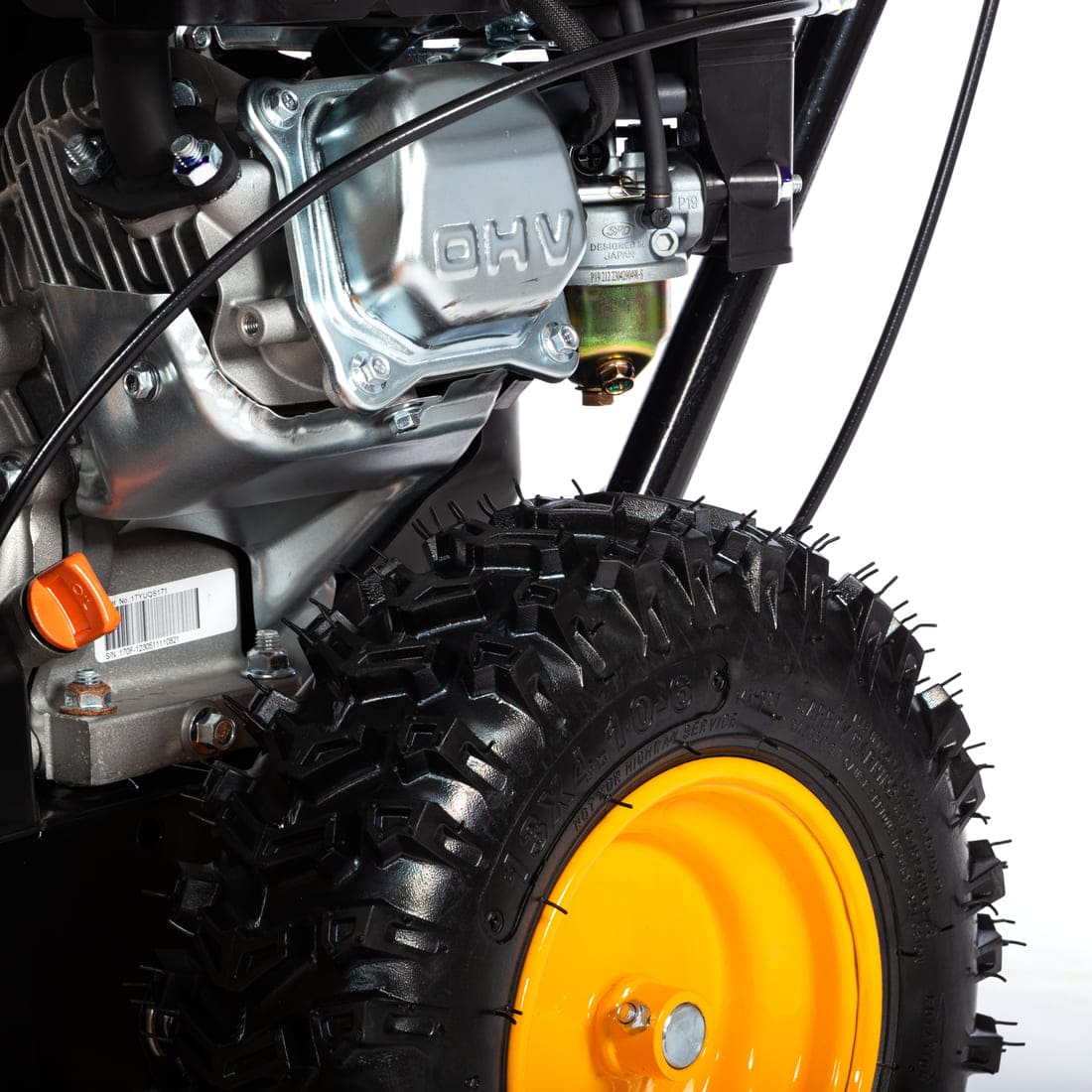 Эта модель способна справляться со снегом плотностью до 200 кг/м3 при производительности до 1,5-2,5 т/ч. Этому способствует достаточно высокая мощность в 6,5 л. с. при небольшой ширине уборки в 560 мм.